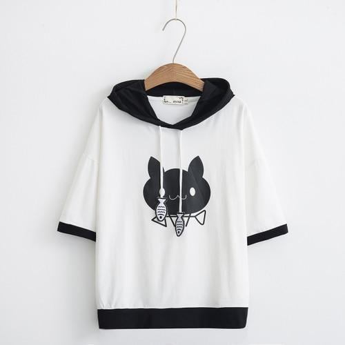 1 * bluza z kapturem z nadrukiem kotów i ryb z krótkim rękawem