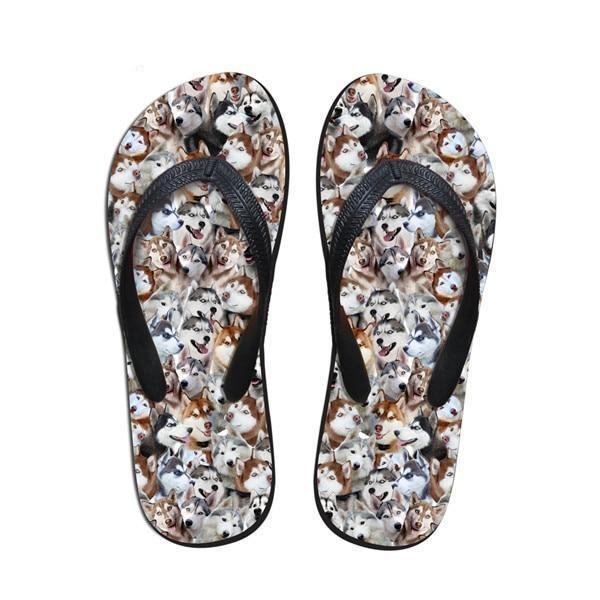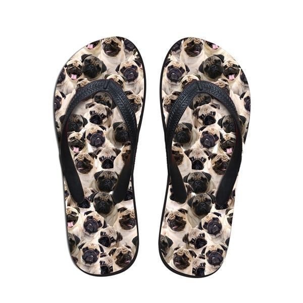 Płaskie Klapki Z Gumowymi Klapkami Z Nadrukiem 3d Z Uroczym Psem