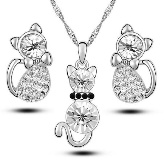 Romantyczne Komplety Biżuterii Z Kotami Kolczyki Naszyjnik Z Austriackim Kryształem