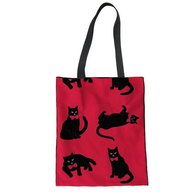 Śliczna Torba Z Nadrukiem W Czarny Kot